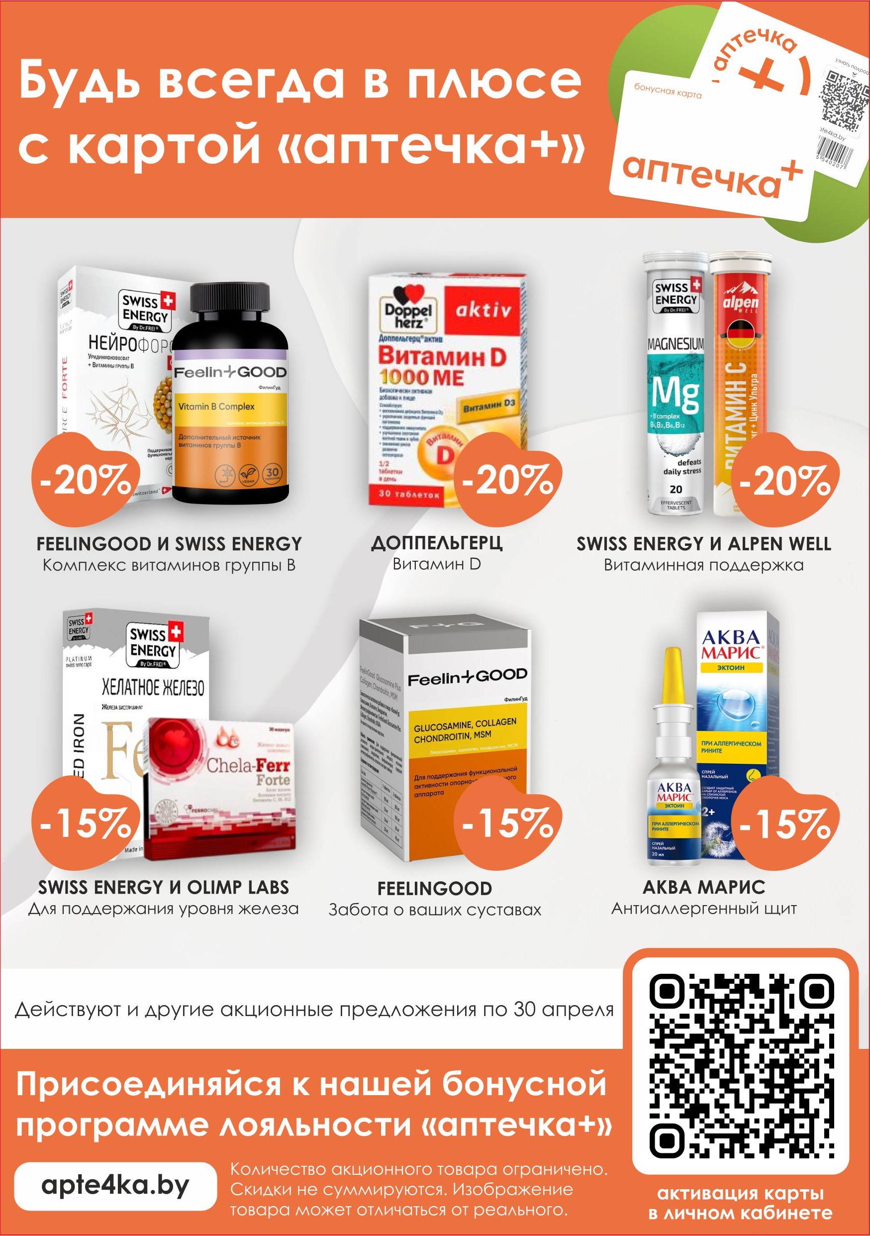 Хочется поддержать организм, но цены кусаются? Карта «Аптечка+» делает заботу о себе приятнее и доступнее. Мы собрали товары, на которые действуют специальные скидки – 15% или 20% – только для владельцев карты.